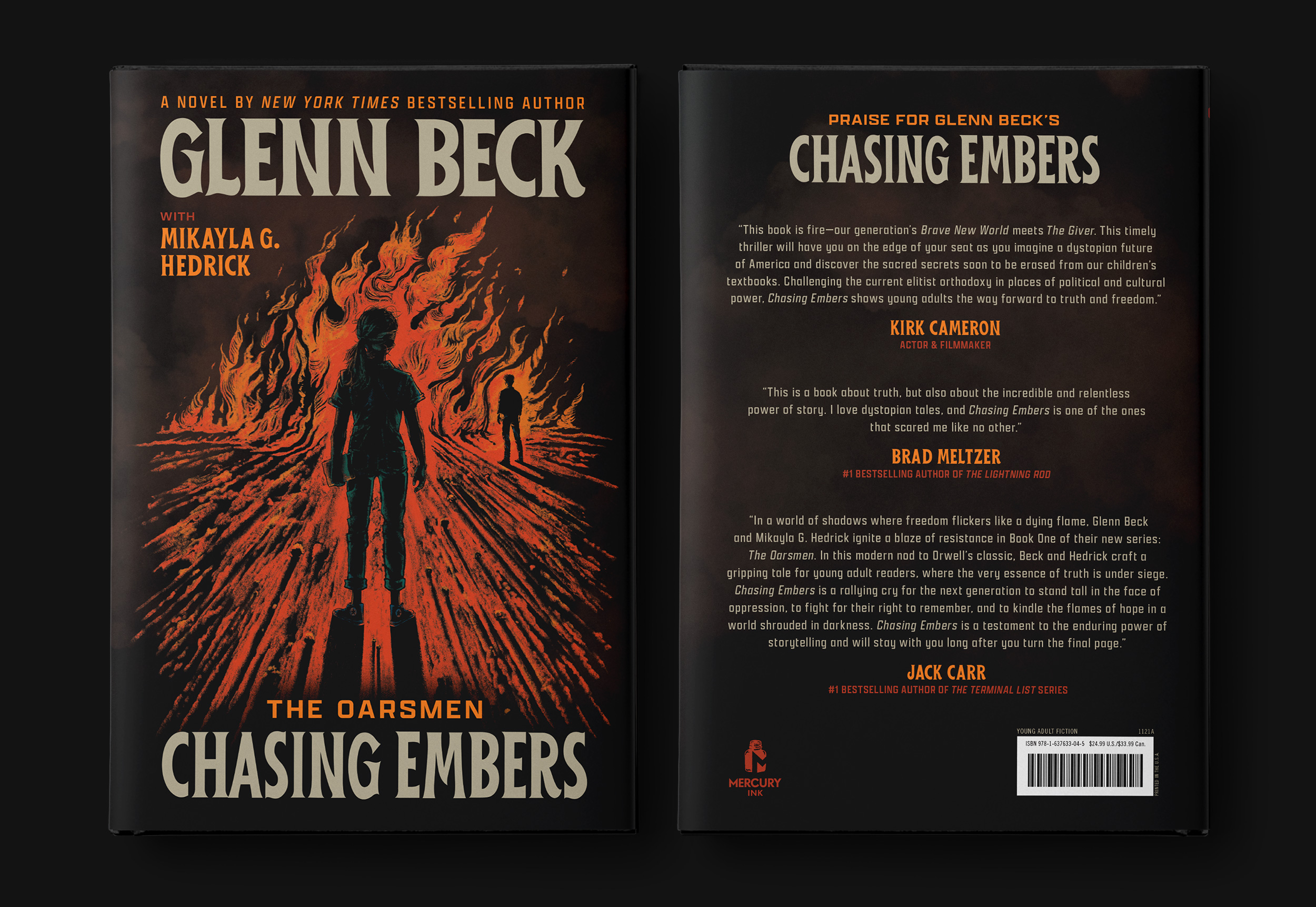 Chasing Embers marks Glenn Beck’s first young adult novel, a story rooted in mystery, courage, and coming of age. As creative director for the project, I was responsible for developing the full visual identity of the book, including the design of the cover jacket and guiding the overall aesthetic direction across print and illustration.