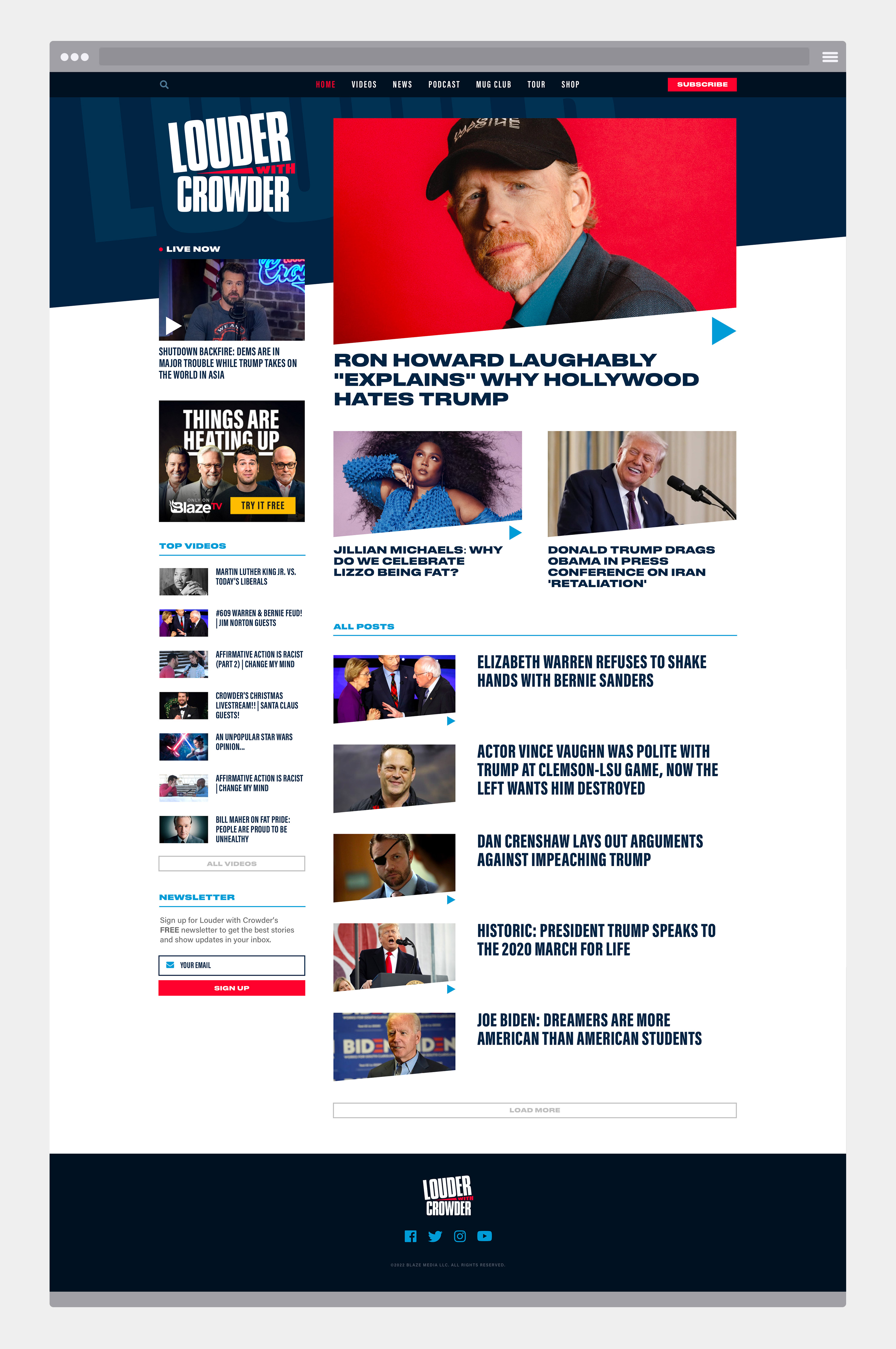 I led the visual identity and brand buildout for Louder with Crowder, the most unapologetically politically incorrect show on the internet, hosted by comedian and commentator Steven Crowder. Known for its unfiltered takes, viral moments, and comedic sketches, the show needed a visual system that could match its bold, high-energy personality while remaining versatile across platforms and formats.