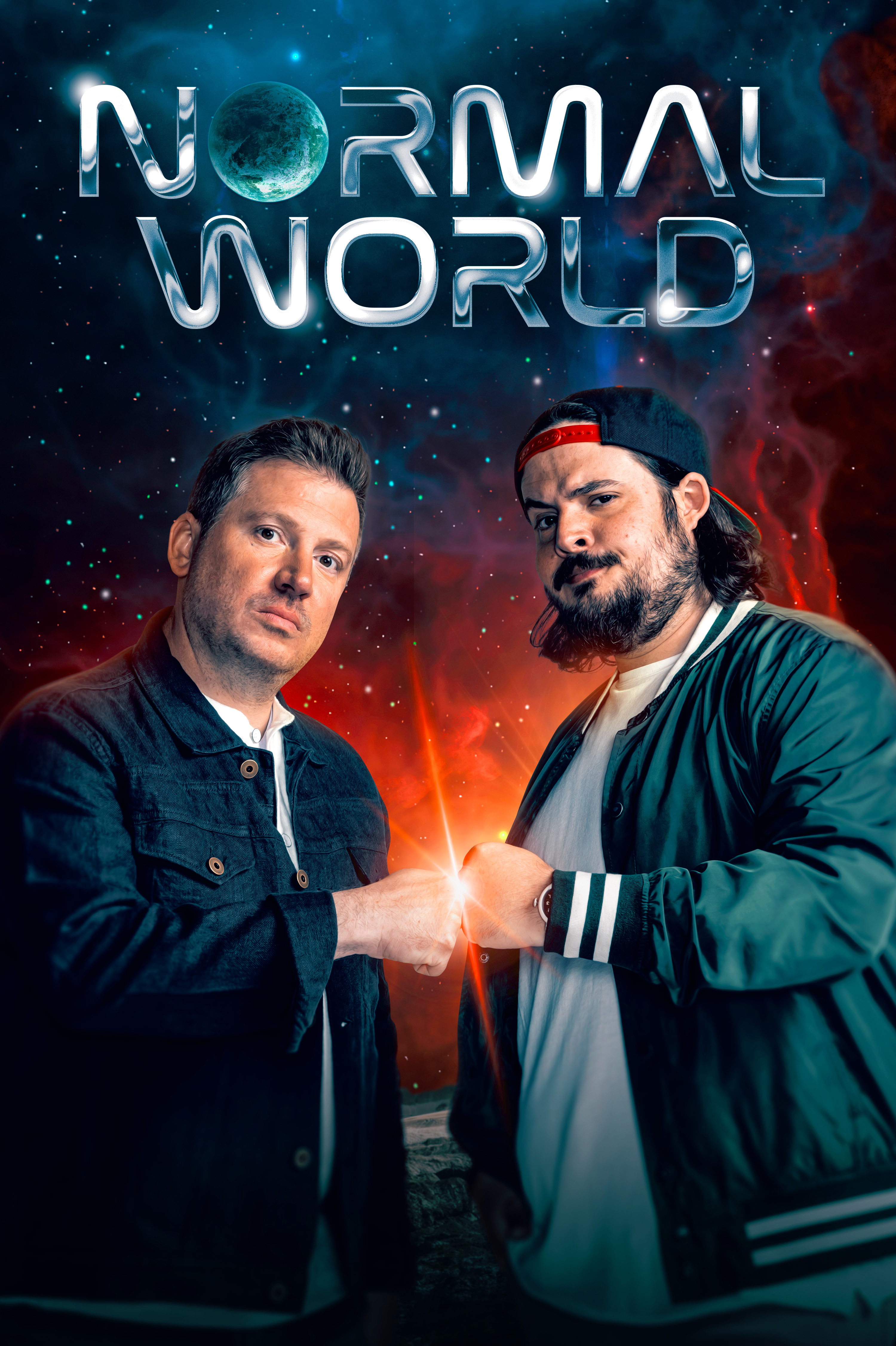 For Normal World, I led the complete visual identity and motion design for one of BlazeTV’s boldest comedic projects yet, a late-night show hosted by comedians Dave Landau and 1/4 Black Garrett. The result is a moody, atmospheric environment with rich textures, metallic accents, soft neon, and subtle cosmic flourishes—almost as if the show is broadcasting from a satellite bar floating over a dying civilization.