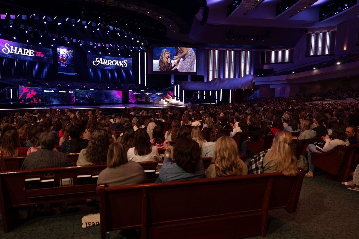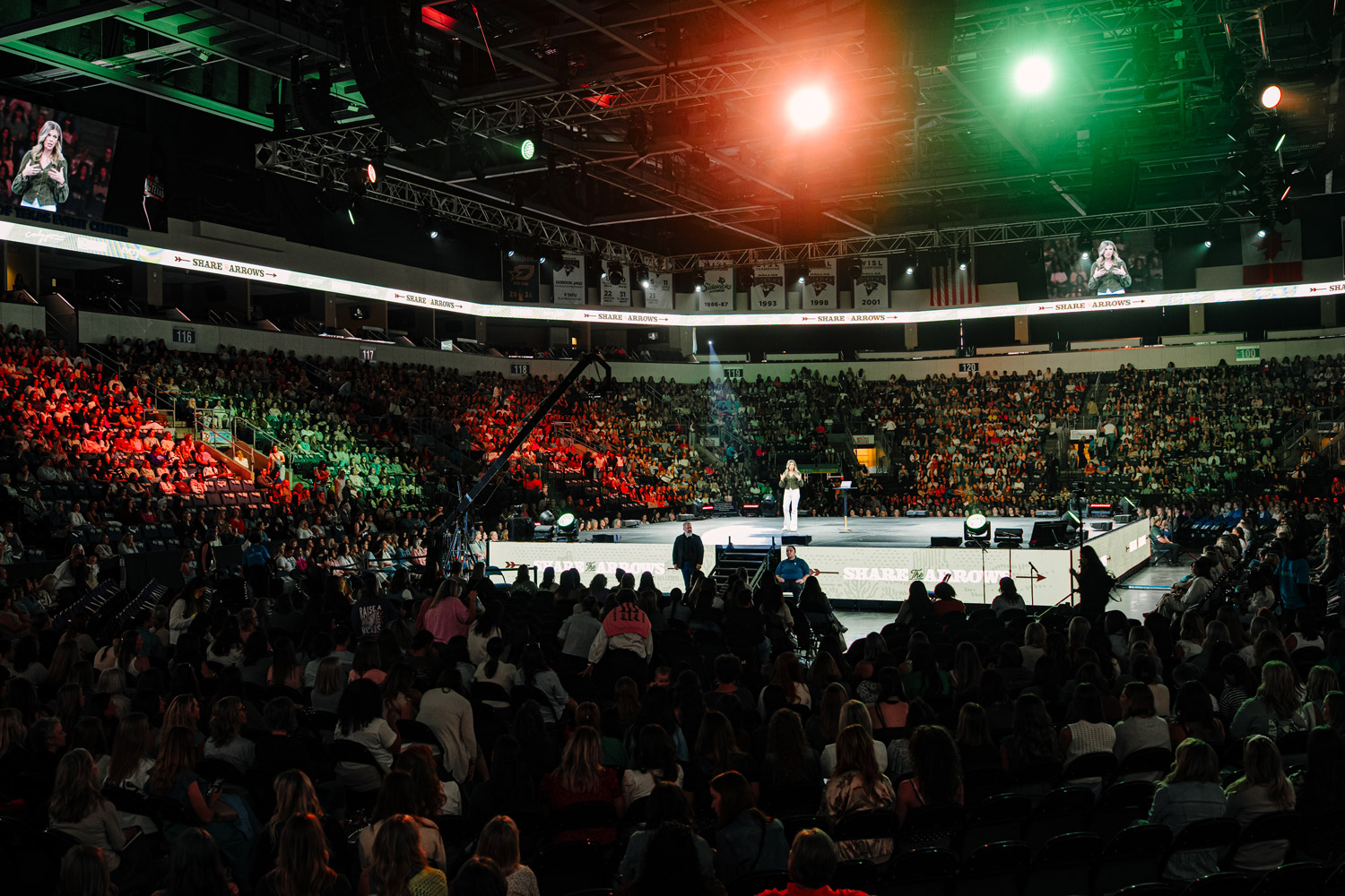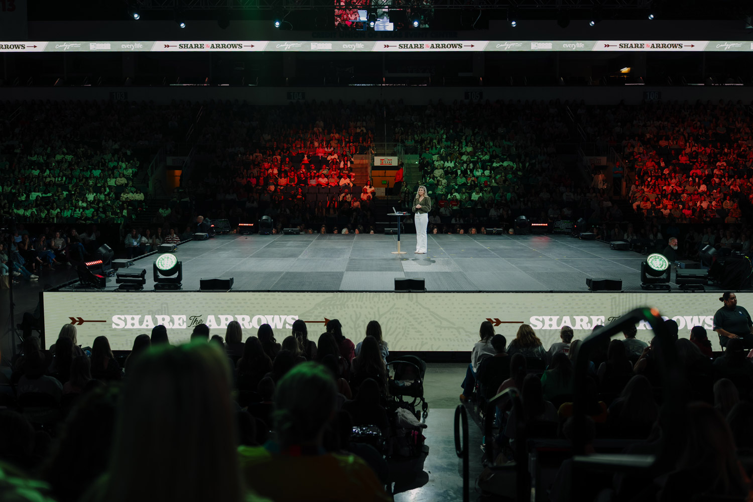 In its second year, Share the Arrows grew to host 6,500 women at the Allen Event Center, requiring a visual system that could scale with the moment.
