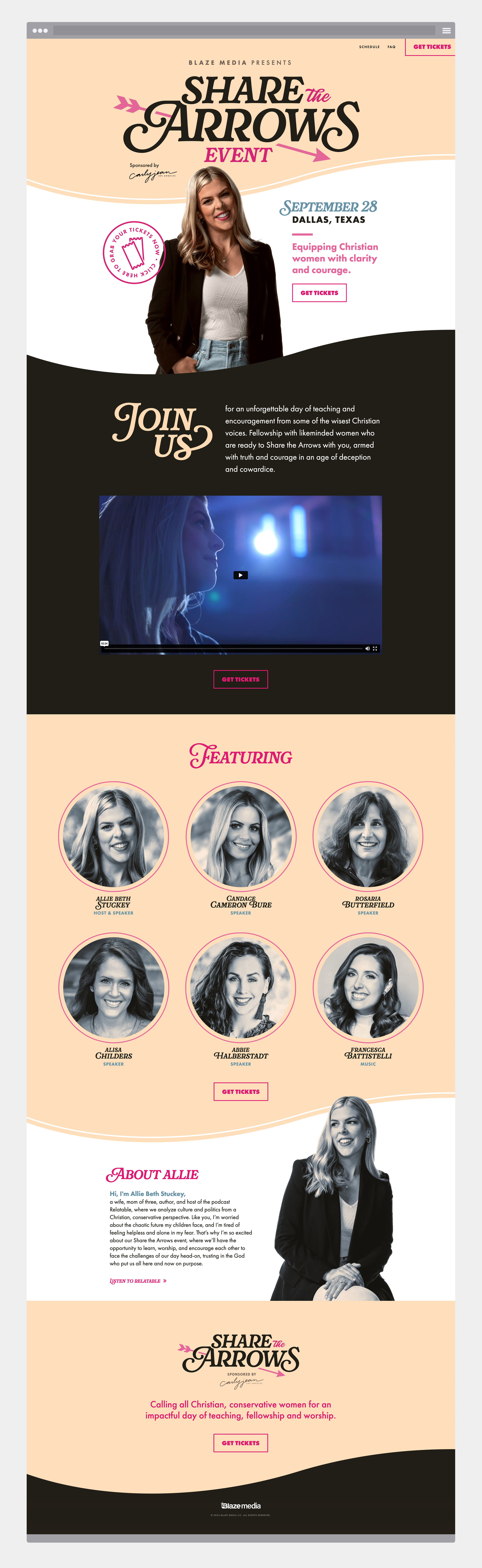 I led the full creative direction and branding for Share the Arrows, a powerful women’s conference founded by Allie Beth Stuckey. My role included creating the logo, visual identity, and marketing materials, as well as designing the full in-venue experience—stage design, signage, and print collateral.